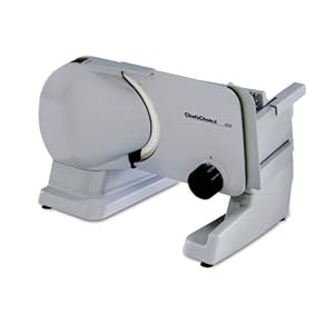 With all structural components made of cast aluminum and stainless steel, this versatile, rugged slicer features a powerful, cool-running, high-torque electric motor and reliable, smooth gears for slicing with ease and confidence. The slicer's tilted food carriage and cantilever design provide fast, efficient slicing, delivering sliced food directly to large trays or platters. Its large-capacity food carriage retracts fully to permit slicing of extra-large roasts, hams, and other foods, while its 7-inch, multi-purpose, stainless-steel blade slices a wide variety of foods from deli-thin to approximately 1-inch thick slices. The unit's blade, food carriage, food pusher, food deflector, and thickness guide all remove for easy cleaning, while, for added security, the food carriage locks into position limiting access to the blade when the unit is not in use. Other convenient features include the slicer's intermittent "on/off" switch and its handy cord storage. A serving tray is included. The slicer measures 15 by 10-1/2 by 10-4/5 inches and carries a 1-year limited warranty.